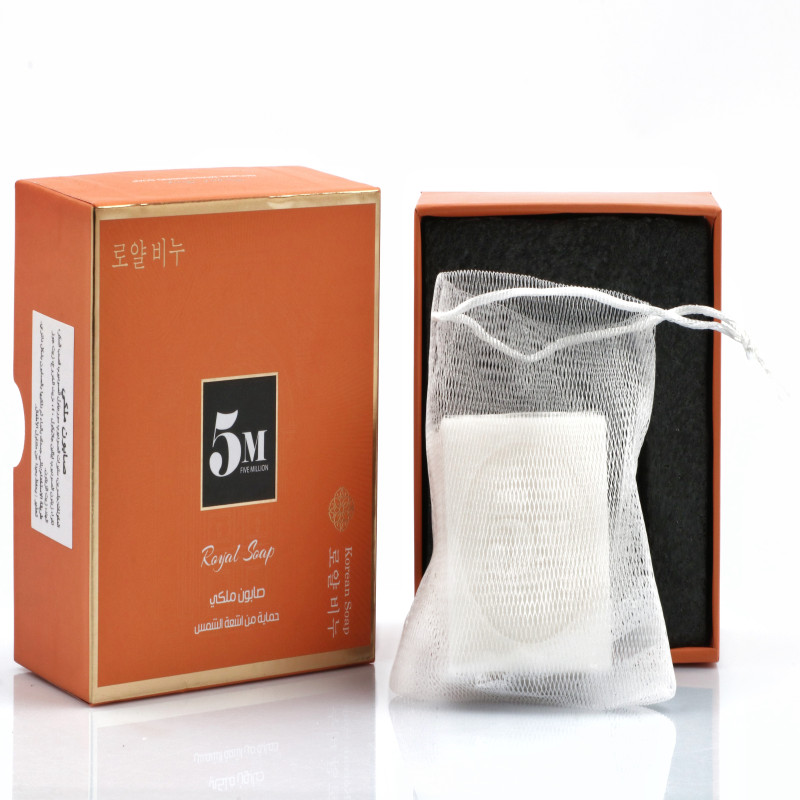 صابون 5M البرتقالي يقدم لك تركيبة كورية متطورة للعناية بالبشرة، تجمع بين التفتيح، الترطيب، والحماية من أضرار أشعة الشمس.